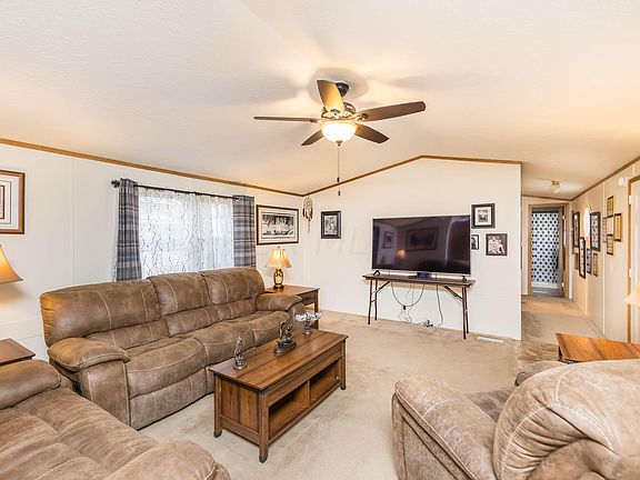 A wonderful 3 bedroom/2 full bath home in popular Scioto Estates! One of the largest models of singlewides with over 1200sq ft! The open floor plan includes a large family room, eat-space & laundry/utility room. Kitchen w/island has a new smudge-proof DW plus tons of counter & cabinet space! Big WIC & oversized shower in primary suite! Full bath #2 has brand new 3/4'' plank flooring! Newer Washer/Dryer are negotiable. Small patio & nice storage shed too! Close to fast-food, a village park, schools & easy access to Grove City, Columbus & Chillicothe! **Must have park approval prior to offer acceptance.