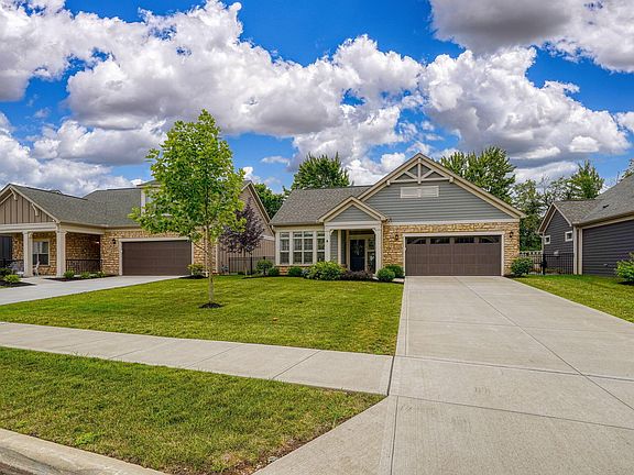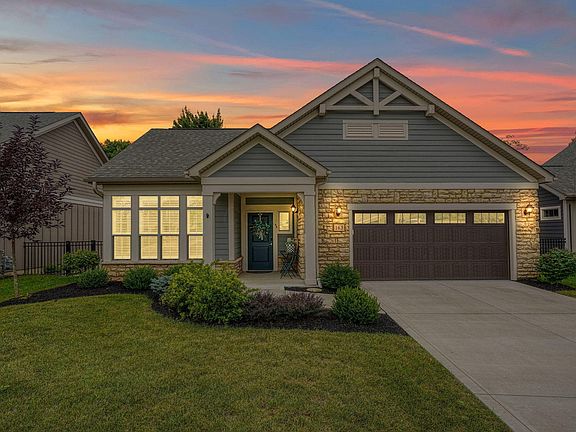 Absolutely stunning interior designers own home. Over $35,000 worth of improvements made since purchase. The very popular Palazzo ranch model with two bedrooms, two full bathrooms, four season room/flex space (den), open floor plan with 9' and 10' tray ceilings, and transom windows. Universal design with wider hallways and doors, upgraded trim package, kitchen with quartz countertops and stainless steel appliances, ceramic backsplash and under cabinet lighting. Luxury plank flooring (LVP), 36 inch gas fireplace with mantle, private courtyard and 2 1/2 car attached garage with attic storage. Just a few of the recent upgrades include plantation shutters, laundry room cabinets and utility tub, incredible lighting including chandeliers and overhead lights and a gorgeous outdoor living space that is fenced with walk around private walk and surround stones with artificial turf. Very popular community with clubhouse rec center and pool.
