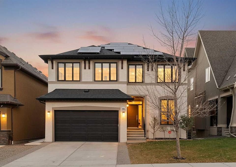 Stunning Lakefront Luxury in Mahogany! Experience the pinnacle of lakeside living in this exceptional walkout home, perfectly positioned on the tranquil shores of Lake Mahogany. Step out your back door and straight onto the lake—just moments from the public beach, clubhouse, and all of Mahogany’s award-winning amenities. Tucked away on a quiet street, this remarkable residence showcases a timeless stucco exterior, a spacious backyard, and a fully finished walkout basement. With over 4,000 sq. ft. of beautifully designed living space across three levels, this 4-bedroom luxury home offers an abundance of room to entertain, relax, and create lasting memories with family and friends. The main floor is bright, open, and inviting, featuring soaring 10-foot ceilings and an awe-inspiring two-storey living room framed by expansive southwest-facing windows that flood the home with natural light. A dramatic floor-to-ceiling fireplace serves as the centerpiece, while the open-to-below bonus room above enhances the home’s sense of grandeur and architectural appeal. The chef’s kitchen is a true showpiece—complete with a gas cooktop, built-in oven, and a full suite of premium upgraded appliances. Elegant finishes throughout include hardwood flooring, 8-foot interior doors, solid wood railings, and more. Upstairs, thoughtful design meets family comfort with a spacious central bonus room, a convenient upper laundry room, two generous secondary bedrooms, and a luxurious primary suite. The primary retreat is your private sanctuary, featuring a spa-inspired 5-piece ensuite and a large walk-in closet, creating the perfect blend of style and serenity. This home beautifully merges luxury and sustainability, featuring solar panels, an electric vehicle charging station, central air conditioning, and a hot tub. The lower-level guest suite is equally impressive, offering a large bedroom, full bathroom, and its own laundry—ideal for visitors or extended family. The walkout level also features a spacious open area perfect for entertaining, complete with a wet bar, and access to a covered patio that opens directly to the backyard and lakefront. Enjoy breathtaking southwest views of the lake and surrounding community from every level, with seamless indoor-outdoor living that captures the true essence of Mahogany. All of this, just steps from shopping, restaurants, parks, and more. This is lakeside luxury living at its finest—book your private tour today!