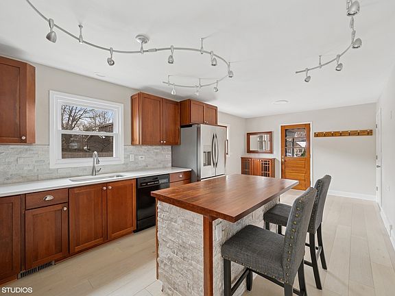 Welcome to 163 Forest Avenue, a charming home nestled in a boutique neighborhood in the heart of the old downtown. Enjoy the unique lifestyle walking to your local butcher, ice cream shop, coffee shop and more. Just a few steps away from gorgeous lake view sunsets, Breezewald Park, and the beach. Step inside to find a beautifully designed kitchen featuring a striking stone backsplash that extends onto the island, perfectly complementing the quartz countertops and Mouser custom cherry cabinets from Elizabethtown KY. Recent upgrades include a new oven/stovetop and refrigerator (2024) and a new dishwasher (2023). Hardwood flooring spans all three levels, enhancing the home's timeless appeal, while thoughtful details like a cozy Harry Potter room under the stairs and a built-in reading bench in the office add to its character. Both the baseboards and interior doors have been updated throughout the home this year! Outside, an oversized garage with 8-foot doors (new in Spring 2024) offers ample space for campers, boats, or large vans, making it ideal for outdoor enthusiasts. The wooden deck, rebuilt in 2024, features built-in bench seating, providing a perfect setting for relaxation and entertaining. The lawn has been recently seeded and covered with straw, ensuring it's ready for spring. The versatile basement boasts a wood-burning fireplace and a full bath, making it an excellent space for gatherings or quiet retreats. Additional updates include a new water heater (2024) rebuilt furnace (2024) for efficient heating, windows replaced in 2024, and freshly painted trim (2025) for enhanced energy efficiency. A home warranty is included for buyer's peace of mind. This exceptional home is minutes from Lake Zurich, Oak Ridge Nature Park, Breezewald Park-with its playground and volleyball court-and Sunset Pavilion, which hosts live music. The vibrant downtown area is also just a short walk away, offering easy access to dining, shopping, and entertainment. Don't miss this incredible opportunity to enjoy both natural beauty and urban convenience. Schedule your private tour today and imagine the possibilities in this remarkable home!