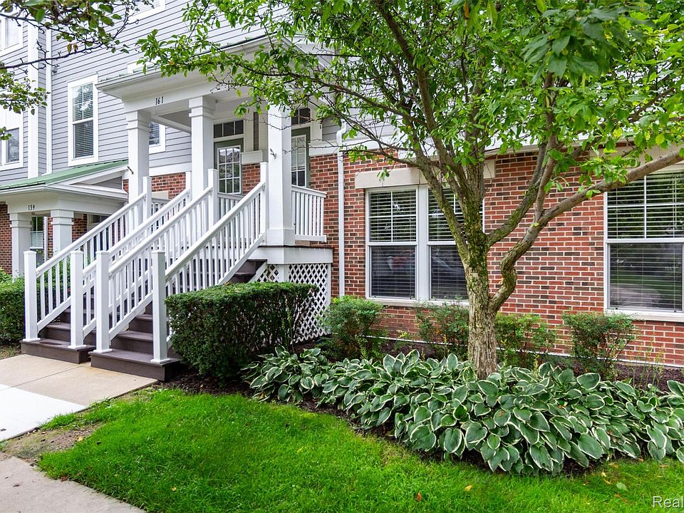 Beautiful Daisy Square Condominium - Walking distance to Downtown Plymouth's Kellogg Park with it's Concerts and Seasonal Events. Home to many of the areas Popular Restaurants and Specialty Shops. This home features Hardwood Floors on the First Floor, Spacious Living Room with Gas Fireplace, Gourmet Kitchen with Granite Countertops Eat-In Island, SS Appliances and Recessed Lighting. French door opening to an east facing balcony to enjoy your morning coffee. First floor Laundry and Powder Room with a Pedestal Sink. The Owner's Suite has a Vaulted Ceiling, Skylight, One Standard and Two Walk in Closets. The Ensuite has a Counter Height Vanity, Double Sink , Solid Surface Top and Soaking Tub. The flexible Loft Area is perfect for a Home Office-TV Room with Low Maintenance Plank Flooring. This Townhouse has a Sprinkler System and an Oversized Attached Garage.
