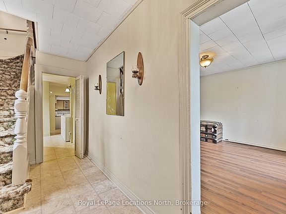 NEW SHINGLES JUNE 2025. This 100+ year-old home offers a unique blend of charm, character and potential. Located in the heart of Meaford, this 3-bedroom, 2-bathroom property is an ideal opportunity for first-time homebuyers. While the home does need some updating, it provides a spacious layout and the chance to add your own personal touches. The main floor has a bright family room that flows into the living room. The kitchen/ dining room have walk out to back deck. Generous sized bedrooms and a large full bathroom upstairs. Backing onto the Georgian Trail, the property offers a peaceful backyard with direct access to outdoor activities. Whether you enjoy biking, hiking, or simply soaking in the natural beauty, this location is perfect for outdoor enthusiasts. Quick walk to the waterfront and downtown. Book your private showing today!
