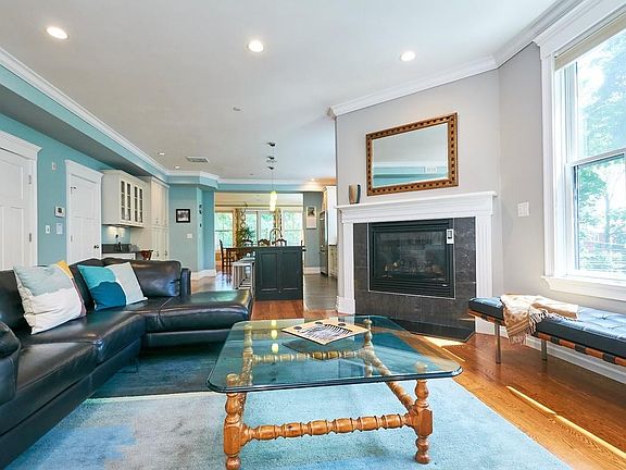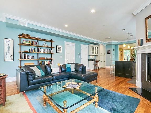 Beautifully designed contemporary condo newly constructed in 2013 in prime Brookline location. Open floor plan is perfect for entertaining and comfortable living. Features include high ceilings, hardwood floors, and large windows that provide abundant natural light. Spacious living room with corner fireplace opens to a stunning kitchen with oversized island, Viking appliances, including 6-burner gas range, Ceasarstone counters, wine fridge, pantry/desk area, plentiful storage and half bath. Flexible dining/family room with sliders leading to deck. Master suite offers a luxurious bath (steam & rain head shower and radiant heat), walk-in closet and private deck. 2 other bedrooms, one with direct access to hall bath, and laundry complete the second floor. 2 car garage parking with heated driveway, deeded storage and yard. Convenient to Longwood medical area, Coolidge Corner, Brookline Village, Brookline Ave dog park, Emerald necklace and Lawrence school district. Don't miss this gem!
