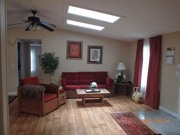 Beautiful Park like setting, this home was been well loved and it shows! Interior features, bright kitchen with new upgraded white cabinetry, granite counter tops, all appliances including the Stainless Refrigerator and Washer Dryer stay! Vaulted Great Room with lots of space for a Large Dining Room Table and Cabinet. All 3 bedrooms have walk in closets.Split Bedroom Plan. Master Features and full bath that feels as fresh as a Spa at the Beach! New Roof and Upgraded Skylights that bring in lots of light. Title already retired! SELLER ASKING PROPERTY CONTINUE TO BE SHOWN