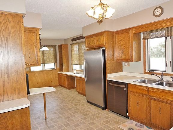 Check out this terrific move-in ready ranch style home in Newburg! Located just 50 miles NE of Minot, Newburg is a small community with an energetic vibe. This 4-bedroom, 3-bath home sits on a generous lot with a large front yard and beautiful shade trees. There is so much space and character inside this home! Enter the dining area and kitchen through the attached, single-car heated garage. You'll find built-ins and cabinets galore, including a wall of floor-to-ceiling cabinets for all your kitchen storage needs! The kitchen also has a new extra-large stainless steel refrigerator, dishwasher and microwave. Off the kitchen is a huge mudroom with laundry which has a large storage closet, a convenient sink next to the washer and dryer hookups, a 3/4 bath and access to the backyard! The first thing you'll notice when entering through the front door, is the Octagon-shaped window and beautiful hardwood flooring in the front entryway. From there you'll either head into the carpeted living room with a large picture window offering abundant sunlight, or turn the corner and follow the hardwood flooring into a formal dining area. Also on the main floor is a large master bedroom with double closets and separate access to the shared full bathroom with a jacuzzi tub. One more nice-sized bedroom is down the hall. A finished basement features a wood burning stove in the family room, two huge non-egress bedrooms and a seriously large 3/4 bathroom. If you're looking for a home with extra storage space then you can stop your search today! Topping off the basement is a large storage room with tons of shelving and a tub sink. A cozy back deck is where the day's activities can wrap up. You can kick back and relax on the deck's built-in seating and sip lemonade under a beautiful shade tree. I can attest that Newburg has THE MOST beautiful sunsets and sunrises in the area!!! Newburg has a K-12 Public School, a newly renovated Bar and Grill, and a bowling alley.