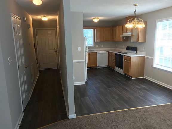 This is a 2 bedroom, 1.5 bath triplex townhome. Enjoy the eat in kitchen with stove, refrigerator, dishwasher & disposal, french door to wooden deck with a storage room out back attached. Kitchen, breakfast nook, large living room and 1/2 bath are on first floor. Both bedrooms are upstairs with one bath between. Laundry room is also upstairs with washer and dryer included. Townhome is electric w gas heat. Tenant pays electric, water, gas. Yard work included with rent. Parking is shared asphalt parking lot no assigned spots. No parking on grass. No inside smoking. APPLICATION MUST BE FILLED OUT BEFORE SHOWING.