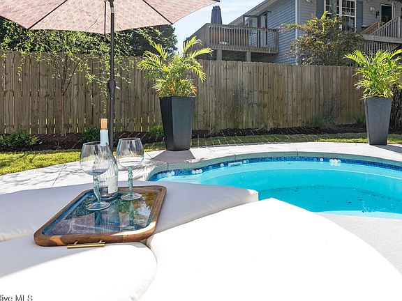 Electric fireplaceIn-ground poolWrap around porchCathedral ceilingHigh-end appliancesCoastal themed tile showerSpacious laundry room