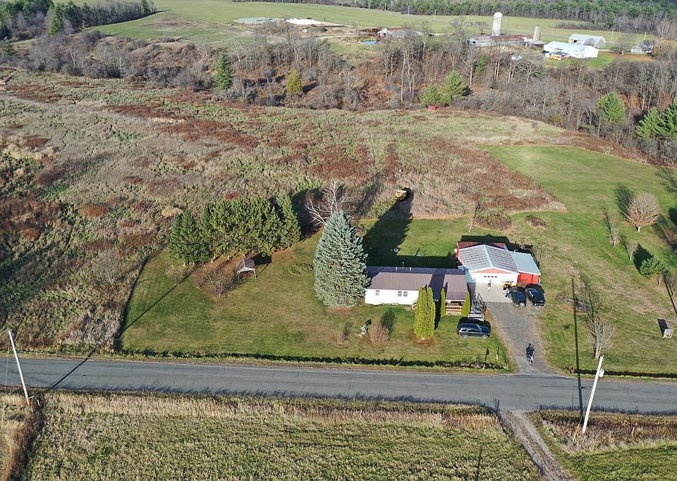 Rural living at its finest, quaint 1982 Ranch style home that was originally a 3/1, the back bedroom has been converted into an accessible full bathroom/laundry room with shower and is currently configured as a 2/2. Massive detached 3 car garage, with tons of additional storage space attached to garage, has an oil stove to heat garage too. Large yard with firepit and pagoda, property back ups to Stacy Brook. Amazing views from every window and front porch. Tons of potential with 11.58 acres for outdoor activities or agriculture.