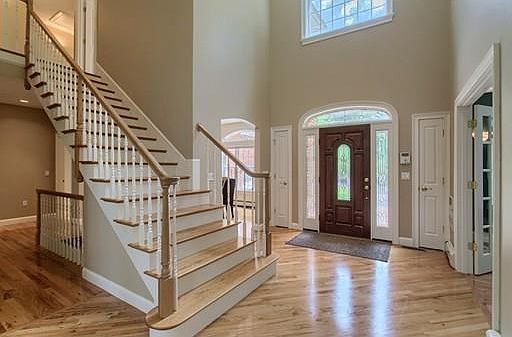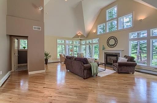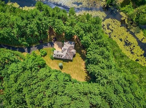 Picturesque custom Colonial by respected builder Henry Fontaine on just under 5 acres. Set at the end of a private drive, this elegant home is surrounded by spectacular water and wildlife views, yet is just a short drive away from commuter routes and amenities. Enjoy the outdoor scenery from the great room with its wall of windows, cathedral ceilings, and gas fireplace. Airy and bright eat-in kitchen with cherry cabinets, built-in wine rack, granite and Corian work surfaces, gas stove/oven plus separate electric convection oven. Gorgeous 1st floor master suite with walk in closet and jet tub in bathroom. Office, formal dining room and 1/2 bath complete the 1st level. 3 bedrooms on 2nd level, one with a Murphy bed built into wall. Full bath on 2nd level with loft overlooking great room and foyer. Finished walkout basement with closets and windows overlooking back yard. Large work/shop space in lower level. Walk in attic storage. See Features List for more details on this stunning home!