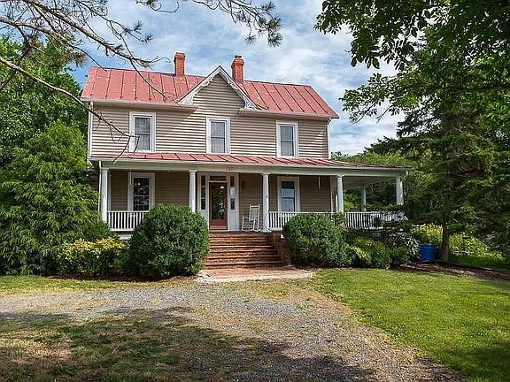 Storybook Farmhouse on 2.2 Acres, which includes 3-bedroom, 3-bath, plus additional bonus rooms - this versatile property offers strong potential for rental or supplemental income. Enjoy the beautiful pastoral views and a welcoming wraparound porch. Inside the main house, you'll find hardwood floors throughout, a parlor with wet bar and built-in bunk, a spacious primary bedroom with balcony porch and clawfoot tub, and a large laundry area. The kitchen offers 2 individual sinks, Corian countertops and an impressive 32ft of counterspace with warm Hickory cabinets. Comfort is ensured with a 2-zone heat pump. Outdoor living is effortless with a veranda featuring an outdoor fireplace and hot tub. The detached 2-car garage includes a heated workshop. You'll find a separate cottage that offers a bedroom, bathroom, kitchenette, and attached greenhouse with its own cistern. The Greenhouse provides supplemental passive solar warmth in addition to the cottage's main heating system. The cottage also features a screened in porch and two-tier deck. Relax, unwind, and take in all this home offers—serene surroundings, gorgeous views, quiet corners, and plenty of space to spread out, breathe, and make every day feel like a storybook.