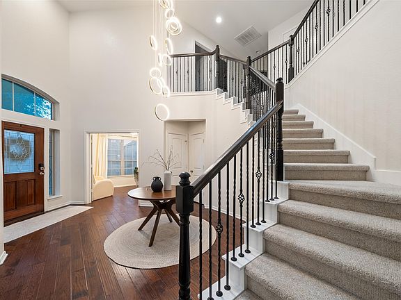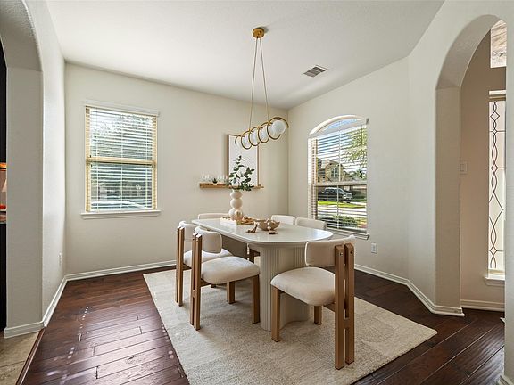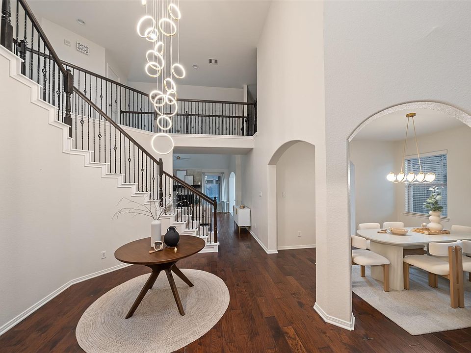 Austin stone fireplaceHardwood floorsAbundant natural lightStainless steel appliancesGranite countersCovered patioFormal dining