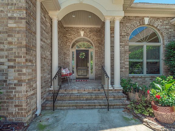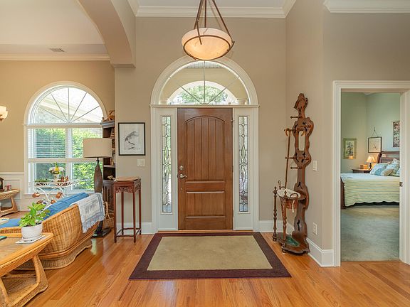 The home, which sits on a cul-de-sac, is surrounded by mature landscaping: shade-providing trees in the back, and two Japanese maples and four crepe myrtles in the front. Azaleas, gardenias, roses, and other flowering plants are well established.
