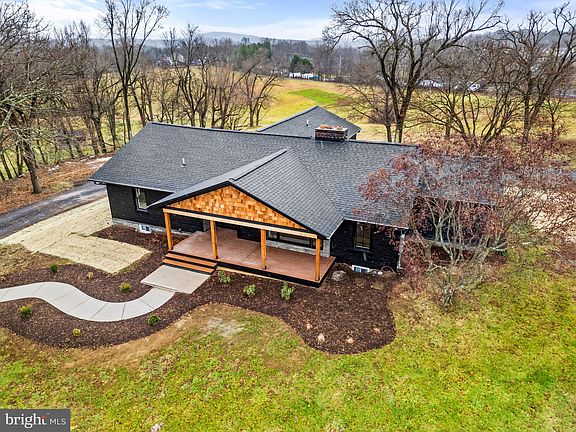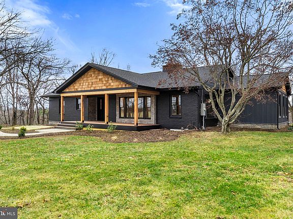 This gorgeous, renovated rancher is everything you want in a house. The upgrades are high end and so widespread, it makes the home essentially new. Hardwoods pepper the landscape on the home’s six accompanying acres, giving you elbow room while only being fifteen minutes from town. And you’ll enjoy 360-degree views from this handsome three-bedroom, 2.5-bath marvel from all the windows and glass doors. The exterior is striking with its combination of black Smartside Siding and Certainteed shingles coupled with a cedar porch that’s going to knock your socks off. The beams, shake siding, and porch roof are richly hued and with the recessed lighting, it takes it to the next level. Add in the stone veneer, and this home looks both natural and sophisticated. Inside, you’re greeted with hickory hardwood floors against a neutral paint palette. A stone fireplace anchors the spacious living room, with a convenient half bath nearby. The kitchen is firmly in the gourmet category with banks of cabinets, an island with room for seating, and a commercial propane range and matching hood. The adjacent dining room lets in light from double glass doors and leads to a patio. A custom reclaimed barn door separates this room from a big laundry room, with cabinetry, counterspace, and a sink already installed. Down the hall are the bedrooms and baths, including the primary suite with its large, attached bath and walk-in closet. Downstairs is an unfinished basement ready to be customized to your liking and already includes a brick fireplace. Don’t miss the opportunity to make this contemporary yet charming home yours! Upgrades include new insulation, plumbing, and electrical, HVAC, Anderson 400 series windows, Therma Tru doors, Travertine flooring, marble flooring, porcelain tile, Monogram appliances, recessed lighting, Trex Transcends composite covered porch with knotty pine bead board, soffit/fascia/guttering, paver patio, and poured concrete sidewalks.