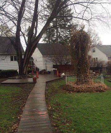 Nicely maintained Horseheads Cape Cod. Enclosed front porch w/French doors, eat in kitchen, 1st floor bedroom. Living room w/bay window & built-in shelves. Open dining room was previously a bedroom w/closet. Nice hardwood floors. Full finished upstairs bedroom w/walk-in closet has electric heat and nicely carpeted. Full deep basement w/extra large windows lets in lots of light. Oversized garage connected with covered walkway to the house. Extensive gardens & landscaping w/custom wood walkway winding through to a large open deck. Large open grassy area beyond the gardens in the extra deep lot.