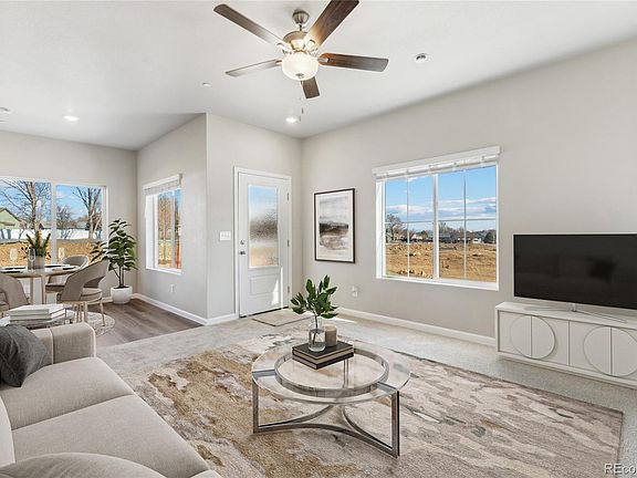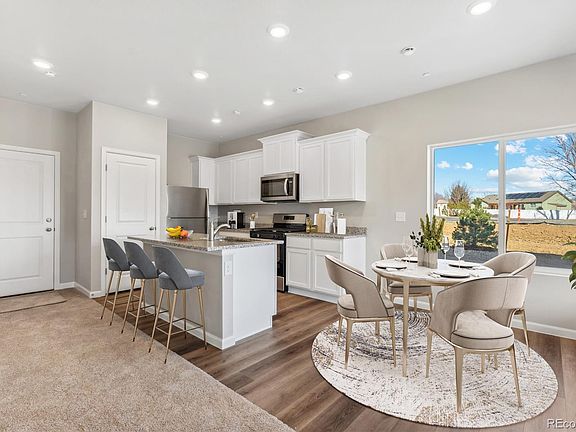 Welcome Home! Completed new construction townhomes that are move in ready. Enjoy creating memories in this gorgeous townhome community that is conveniently located and features 3 bedrooms, 2.5 baths, and 2 car attached garage with an open floor plan. At 1631 sq ft our beautiful and spacious Monarch model is an end unit and features a thoughtful layout built for easy living including a large primary bedroom with a private bath, and walk in closet, upstairs laundry room, modern chef ready kitchen with an island, A/C, covered porch and balcony. Discover the LGI Homes' CompleteHome package, this home has incredible upgrades at no additional cost including a gas range/oven, refrigerator, microwave and dishwasher, gorgeous granite countertops, designer wood cabinets, wood blinds on all windows, and a Wi-Fi-enabled garage door opener are just a few of the fabulous upgrades that make this townhouse the place you want to call home. Located just minutes from I-25 and the new Ledge Rock shopping center, this home provides easy access to a variety of shopping, dining, and entertainment options.