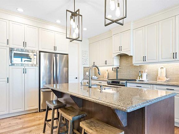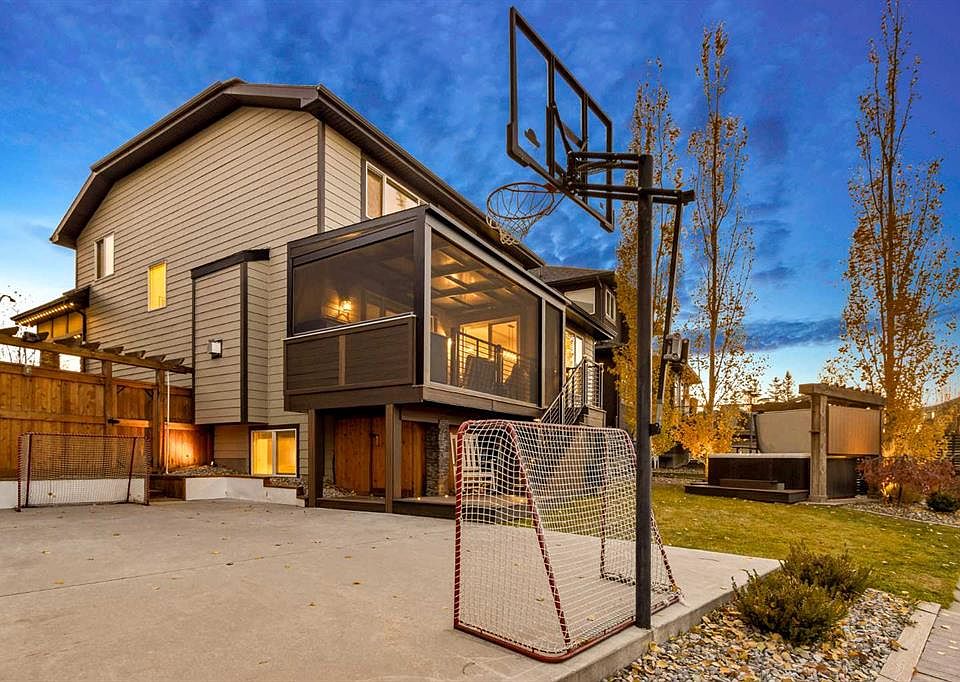 *See links for video, virtual tour, floor plans, and more!* Imagine a distinctively crafted family home, meticulously upgraded and enhanced from top to bottom with uncompromising taste and skill. Welcome to 163 Cranarch Landing – a residence that stands apart for countless reasons, and a stunning example of craftsmanship, comfort, and family function. With over 3,100 sq ft of finished space, exceptional finishings, four bright upper bedrooms, and an epic exterior amenity package, this home has it all. The main floor features warm hardwood throughout, a statement stone fireplace, and custom built-ins framing the sweeping great room. The chef’s kitchen is both elegant and functional, with full-height cabinetry, quartz counters, gas range with pot filler, and a walk-through butler’s pantry with second fridge and coffee station – ideal for entertaining or busy family mornings. Just off the entry hall, a pocket office provides the perfect spot for remote work or homework, while the mudroom offers built-in lockers and custom tile. Upstairs are four generous bedrooms, a five-piece bath, large laundry room, and a central bonus room with fireplace and surround sound, and the space every growing family needs. The primary retreat is completely remade into a boutique hotel-inspired en suite spa with heated floors, freestanding tub, shiplap walls, and oversized dual-head steam shower. A cozy fireplace, custom lighting, wood shelving, blackout blinds, and upgraded carpet complete this serene 1,415 sq ft upper level. The professionally developed sunshine basement offers full-sized windows, media area, gym, games room, dry bar, fireplace, wine cellar, and ample storage. Step outside to discover what truly sets this home apart. A Trex composite deck with aluminum pergola, polycarbonate roof, retractable screens, and heaters creates a multi-season outdoor living space overlooking a private landscaped yard. The custom outdoor kitchen features powder-coated cabinets, Dekton countertop and backsplash, bar fridge, and built-in Artisan gas grill and pizza oven. A seven-person hot tub sits amid Trex decking and pergola, with shed, hot/cold hose bibbs, Gemstone lighting, irrigation system, and Hardie board/Lux metal siding. The generous pie lot features a concrete sport court ready for every activity from summer basketball to winter hockey. Behind the scenes, find dual furnaces with HRV and HEPA filters, central A/C, new hot water tank, water softener, humidifier, radon mitigation, integrated Sonos audio, and a custom overflow mudroom that extends into the heated garage for ultimate functionality. Perfectly situated in a quiet crescent backing onto green space, playground and the Cranston Ridge trails, this home offers direct access to mountain views, Fish Creek Park, Bow River, YMCA, and vibrant amenities and future LRT of Seton. 163 Cranarch Landing is more than a home – it’s the comfort, connection, and elevated family life you've been waiting for.