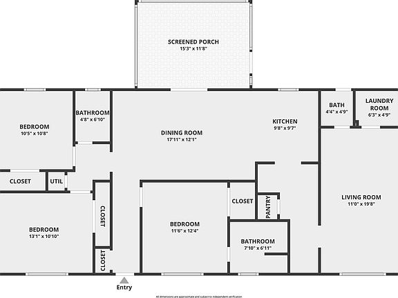 - Stall Shower, Window Treatments, Pantry, Split Bedrooms