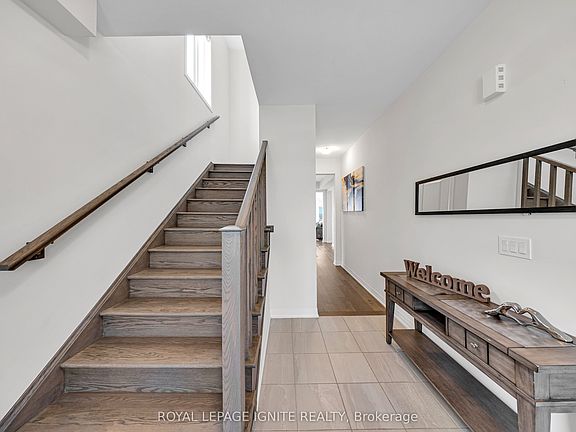 Discover this beautifully upgraded family home perched above the neighborhood, offering unobstructed views of Hamilton Airport. The modern stone and elegant pot-light accents create striking curb appeal. Inside, an open-concept main floor with coffered ceilings seamlessly connects the dining, living, and kitchen areas perfect for both family living and entertaining. The chefs kitchen features granite countertops, a breakfast island, stylish lighting, and walkout access to the backyard. Upstairs, youll find 4 spacious bedrooms, 3 bathrooms, and a convenient laundry room. The primary retreat includes a coffered ceiling, large windows, a walk-in closet with door sensor, and a spa-like 5-piece ensuite. A second bedroom offers a private 3-piece ensuite, while the remaining bedrooms are generously sized. This home is loaded with thoughtful upgrades: rough-ins for central vac and an EV charger, smart wiring throughout, soffit camera, garage door opener, roof outlet for holiday lights, conduit from basement to attic, occupancy sensors, and more. Nearly $120K spent on upgrades, appliances, and a finished basement! The lower level adds two bedrooms, a spacious living room and kitchen ideal for in-laws or extended family. Located steps from Bus 20 with easy access to downtown Hamilton and GO Transit to Toronto.