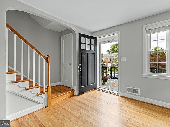 Updated 3 bedroom 2 full bath End of Group townhouse in Rodgers Forge ! This beautiful street has easy access to everything! The front approach has updated lighted brick/ bluestone steps that lead to a large bluestone front porch. Freshly landscaped with extra exterior lighting and a new decorative railing. As you step in front door there are hardwood floors throughout and neutral paint. Spacious living room and separate dining room are perfect for entertaining. Very Sunny and bright. New windows with blinds. Galley kitchen with a back door that leads to brick patio out back.New Fridge. Private fenced in back yard with grassy area and parking pad outside the fence. Park out back and carry groceries directly in to the kitchen! Small area for a fire pit if desired. 3 bedrooms upstairs with hardwood floors, new windows and a new renovated full bath. Fully finished lower level with a beautifully renovated full bath ( walk in shower). Custom built in bench with reading light. LVP in lower level for easy maintenance and walk out steps ( freshly power washed) leading to back yard. Full size stackable washer and dryer and sink. Wonderful neighborhood Wonderful Home! Excluded: planters on front porch. Not pets, No smokers, Excellent credit score required (700).Tenants must apply thru RentSpree. ( Background check, sufficient income, credit history).