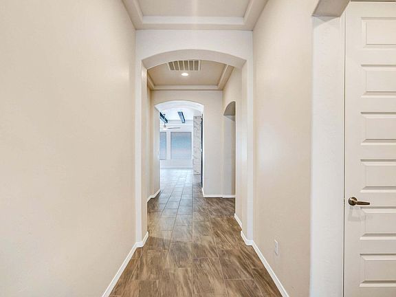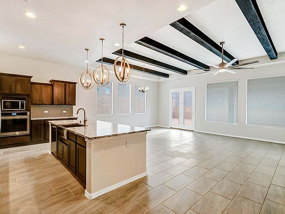 Private backyard with No neighbors behind! FRESH & BRIGHT 3 bed, office, 3 bath beauty w/ 3 car garage, extended to accomodate a large pickup truck! This stunner is less than 2 years old and has gorgeous style upgrades woven throughout including 2 custom security doors! Enjoy open living space with tray ceiling and beams, tile flooring, and a centralized fireplace. Modern pendant lighting hangs over the extra large kitchen island alongside your culinary dream kitchen with bullt-in appliances, large pantry and an adjacent dining area. Rest up in your elegant master with a walk-in closet, walk-in master shower and double sinks. Walled-in backyard with covered patio includes new cement work for the shed and walkway to the shed