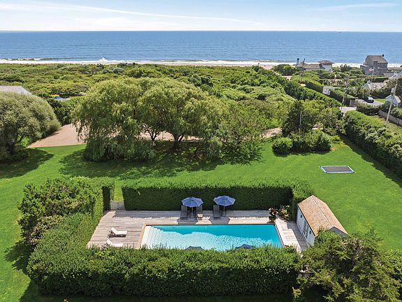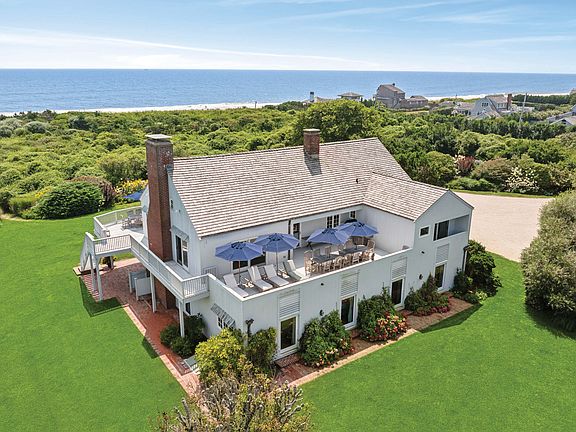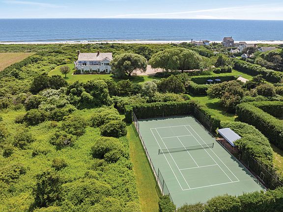 Down a long, gated drive, this ultra-private, fully fenced 9 acre oceanfront estate offers the ultimate Hamptons retreat. A secluded path winds through the dunes to your own pristine stretch of beach, while resort-style amenities-including a heated gunite pool with pool house, tennis court, and flourishing flower and vegetable gardens-create a haven of leisure and refinement. The 6 bedroom, 5 full and 1 half bathroom residence is designed for effortless coastal living, featuring airy, light-filled interiors and a spacious wraparound deck that captures sweeping ocean views. The lower level includes a relaxed entertainment area with pool and ping pong tables, perfect for gatherings with family and friends. Surrounded by natural dunes and vibrant gardens, this serene, gated property offers an unparalleled blend of privacy, luxury, and timeless Hamptons elegance.