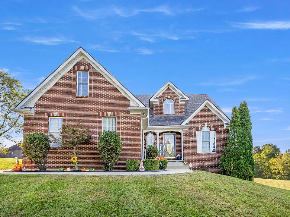 Stunning all-brick home in Shiloh Pointe on a full acre with over 3,000 sqft and a finished luxury basement. Features vaulted ceilings, abundant natural light, and an updated kitchen with granite countertops and upgraded cabinets opening to two dining areas with scenic views. The first-floor primary suite offers a renovated bath with a walk-in shower and jetted tub. Enjoy the Trex-style deck overlooking the fenced backyard and open meadow. Major updates within the last five years include the roof, kitchen, stainless appliances, HVAC, water purification system, primary bath, and deck. The walkout basement includes a fireplace, wet bar, built-ins, and fridge. Conveniently located just off I-75, this 5 bed / 3.5 bath home blends luxury, comfort, and space.