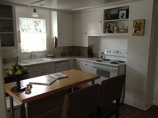 This beautifully landscaped 3 bedroom, 1 bath home with mature fruit bearing plants and raised beds features:- Hardwood floors- Electric fireplace- Dining room with french doors leading outside- Pass thru kitchen with upgraded appliances- Stainless steel fridge- Dishwasher & garbage disposal- Newer energy efficient windows- Washer/dryer- Common area patio- Professional yard care provided with shared option of seasonal harvests No smoking, no pets preferred