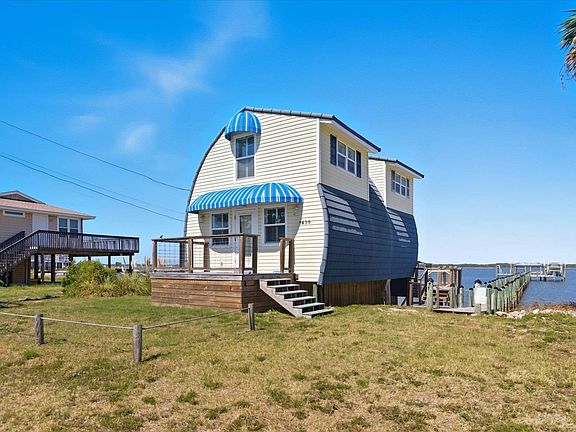 Enjoy the best of both worlds with deeded Gulf beach access just across the street and your own private dock and boat lift on the bay! This waterfront gem features brand new front deck awnings, new back doors, and an expansive deck offering stunning bay views. Strong rental income potential in a laid-back, low-density beach community where nature thrives and crowds are few. Walk to the marina and tiki hut, or take the boat out for deep water fishing just minutes away. Located only a few miles from the Gulf’s best seafood. Reasonable flood insurance makes this an ideal investment or private getaway!