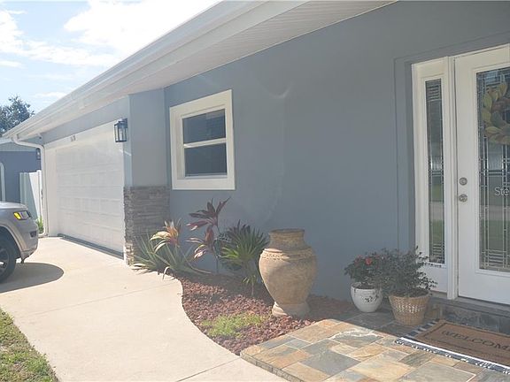Immaculate 3 bed/3 bath home!! This stunning, spotless, move in ready home is warm and welcoming. A completely remodeled beauty, featuring rich cherry plank laminate flooring, granite countertops, stainless steel appliances in the stunning kitchen and much more. Soaring ceilings add to the spaciousness of the open plan living and dining rooms. Laundry room includes a one year new washer and dryer set. Enjoy a glass of wine on the lovely lanai while listening to the calming sound of water babbling in the backyard creek. Lush landscaping and path lighting adds to the ambiance in the tropical back yard. Must see!
