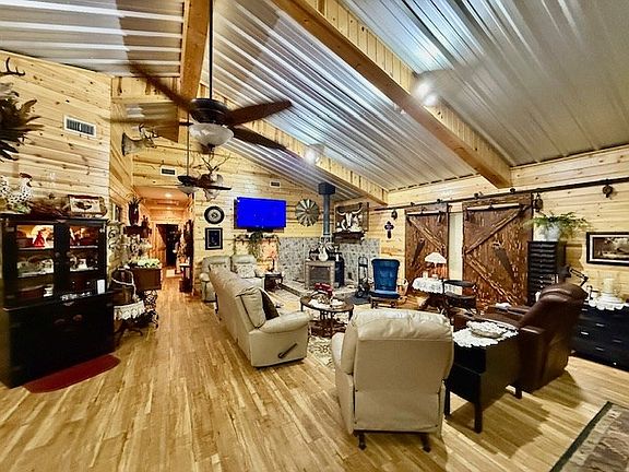 Substantial price reduction! Secluded and a stone throw from Lake Sam Rayburn. This almost 15 acres of pasture dotted with mature hardwoods is a dream place. 3/2 custom home built n 2019 is move in ready. Open concept with vaulted ceilings, kitchen to die for , island with breakfast bar. Living with wood burning heater, large master with huge walk-in shower and walk-in jetted tub, double vanity. Beautiful views from wrap around porch. Lots of buildings, guest house, work shop/garage, barn. cellar/storm shelter, old log barn, fish hut, gazebo, RV parking hookups, etc. Pond lined with Cypress trees. Perimeter under high fence.