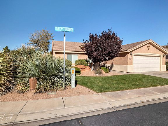 Discover your ideal home in St. George, Utah! This 3-bed, 2-bath gem offers 1,231 sq ft of comfort on a corner lot with a 2-car garage. Inside, enjoy an open layout connecting living, dining, and kitchen spaces. The master suite provides a tranquil escape, while two additional bedrooms offer versatility. Outdoors, mature landscaping enhances the corner lot for added privacy. The community boasts a pool, pickleball court, and park, providing endless entertainment just steps away. Affordable HOA fees make this a smart choice, ensuring access to amenities without breaking the bank. This home combines convenience with a central location, making it perfect for those seeking a balanced lifestyle. With its thoughtful design, community perks, and affordability, this St. George home is a must see. Welcome to your dream home in the heart of St. George, Utah! This immaculate 3-bedroom, 2-bathroom residence is a spacious haven with 1,231 square feet of well-designed living space. Nestled on a generous corner lot, this home boasts a 2-car garage, ensuring both convenience and security for your vehicles.