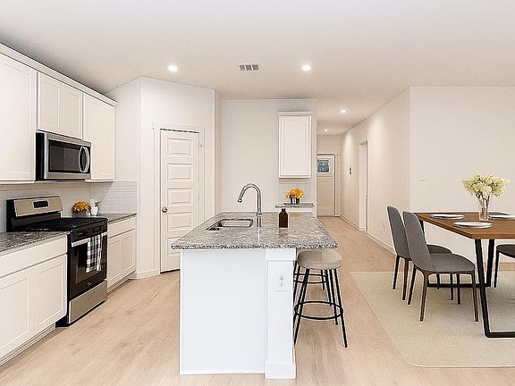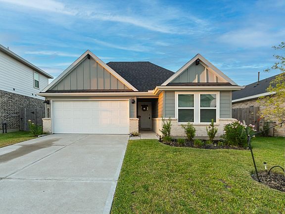 Welcome Home! Experience this beautiful 4-bedroom, 2-bath home in a peaceful, newly developed community. Enjoy an open floor plan with luxury vinyl plank flooring, neutral tones, and recessed lighting throughout. The modern kitchen features a large island, stainless steel appliances, ample cabinetry, a walk-in pantry and a STAINLESS STEEL REFRIGERATOR. The layout includes separate living and dining areas, while the spacious primary suite offers dual vanities, a walk-in shower, and a generous closet. Relax or entertain on the covered patio and fenced backyard. Smart-home amenities include keyless entry, a tankless water heater, and an automatic garage door opener. Conveniently located less than 10 minutes from Walmart and H-E-B at Manvel Town Center, with quick access to Hwy 6, Hwy 288, and Fort Bend Tollway. Zoned to top-rated Fort Bend ISD schools. Community features a pool, splash pad, pond, walking trails, and playgrounds. Schedule your tour today!