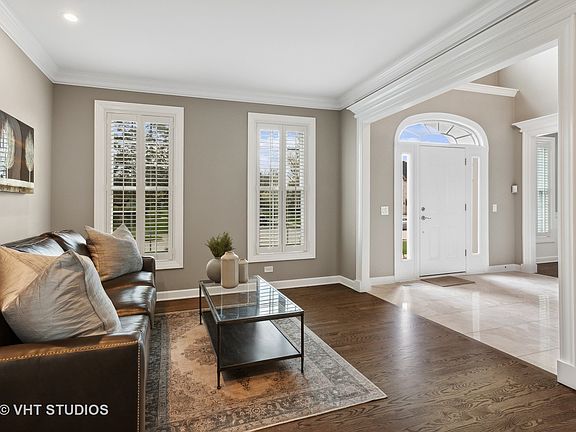 Elegant, sophisticated and warm! This custom home is nestled in the coveted Hunters Glen cul-de-sac and backs up to the prestigious Chicago Golf and Country Club. 1630 is a lovely lot that is a true Wheaton jewel. The backyard views are vase and spectacular, giving you privacy and openness rarely found in suburban living. This stunning home has been meticulously maintained and has been recently updated. This home has so much to offer; new roof, new windows, newly refinished hardwood floors and newer mechanicals- it s almost like buying new construction. Step into the foyer and you are greeted by 20' ceilings, large windows that flood this home with light and the newly refinished stairs and banisters. Along with the stunning 20' ceiling foyer, the entire house uniquely boasts 9' ceilings creating a spacious atmosphere throughout. As you pass the formal living room you'll find dual French floors that lead into the office. It is an ideal work-from-home space with views out the breathtaking gardens. The cathedral ceilings continue in the family room with a floor to ceiling fireplace that takes center stage. Recently renovated, this remarkable kitchen has custom Bakur kitchen cabinets that feature roll out trays, tons of storage, an appliance caddy, along with display cabinets and moldings for a beautifully finished look. Cambria granite countertops are complemented by the stone tile backsplash and all is beautifully highlighted with custom under and above cabinet lighting. The home chef will appreciate the Thermador appliance package which includes a 6 burner gas stove with a large exhaust hood. Enjoy plenty of kitchen and food storage with an additional large walk-in pantry. Host your next holiday in your formal dining room that includes its very own butlers pantry. Head upstairs by using either of the two staircases. Enter into the oversized primary suite with cathedral ceilings with newly installed recessed lighting. The master suite contains vast windows looking onto the golf course, incredible custom closets and spacious sitting area. The primary ensuite bathroom includes dual sinks, custom Bakur cabinetry, and a separate water closet with large walk-in shower and toilet. After a long day you can soak in your built-in BainUltra air steam tub. You will be amazed with the amount of storage in the massive walk-in closet with built-in closet cabinetry. With three additional bedrooms located on this floor the laundry room is conveniently located on the same level making laundry a breeze. All three bedrooms have newly installed recessed lighting and ample closet space. The 2nd bedroom is perfect for guests with its own ensuite bathroom. Head downstairs to the fully finished basement that is equipped with a bonus kitchen and its own bathroom. The basement could be set up with a game room, theater or kids' playroom. Included in the basement is a bathroom and bonus kitchen space with dual ovens. Stay home and stay fit in your separate personal gym. The large back room and walk-in crawl space gives the home ample and unique storage. Keep your vehicles, sporting equipment and outdoor items in the upgraded, newly finished, 3 car garages. In the summer months you will want to be outside on the custom elevated slate patio with a fireplace, fountains, and built-in BBQ. The patio is surrounded by lush vegetation, there are gorgeous flower beds surrounding the property along with a variety of mature trees including; oak, birch, maple and evergreen. When you are not home enjoying your custom home and garden you can have fun at one of 52 parks that span 800 acres or take a bike ride along the 61 miles of Prairie Paths. This home is near Historic Downtown Wheaton where you can enjoy all the new hot restaurants, spas and shopping needs, as well as having easy access to the Metra and expressways