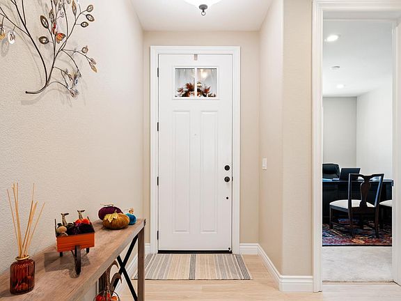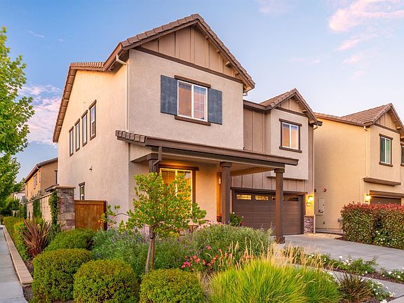 This corner K-Section home shines with upgrades and finishes you'll love! It starts with a beautifully manicured yard and covered sitting porch. Just inside luxury vinyl plank flooring runs throughout the first level. A bright office with built-in shelving sits adjacent to a gorgeous full bath with tiled designs and modern vanity. Continue on to the open kitchen and living room floorplan featuring GE Monogram appliances, large island with sink, quartz countertops, soft-close cabinetry, gas fireplace, and in-ceiling speakers. A mudroom with sizable pantry and 2-car garage with overhead shelving complete the floor. Extra-padded carpeting takes you upstairs to an incredible loft with ceiling fan and bright windows. Two bedrooms with ceiling fans, full bath with double-sink vanity, laundry room with sink, and primary suite with two walk-in closets, soaking tub, semi-frameless enclosed shower and cultured marble countertops delights on the 2nd floor. The landscape designer backyard is a private space with patio, lush foliage, and raised garden bed. The entire home is kept comfortable with dual-zone A/C, fully cased windows, 8-ft doors downstairs, extra insulation, and recessed lighting throughout. All of this is moments from parks, Sonoma State and the renowned Green Music Center!