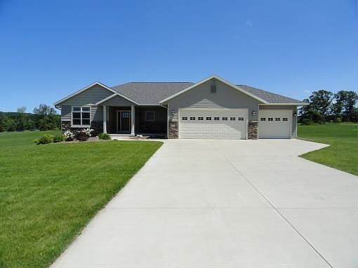 Stunning country home just minutes from Point. 5 BR, 3.5 bath ranch on gorgeous 2 1/2 acres. This home is filled with fine amenities. Open concept gourmet kitchen features granite counter-tops, maple cabinetry, large center island, walk-in pantry and stainless appliances. Cherry hardwood floors throughtout.Kohler fixtures, large mudroom with built in maple lockers and half bath at garage entry. Lots of closet space! Gas fireplace in spacious living room, large deck through glass doors off dinette.Master bedroom offers tray ceiling, his/hers sinks, whirpool tub with separate walkin shower, and large walk-in closet. All closets feature space organizers. First floor laundry. Lower level features 2 bedrooms, full bath, and large rec room. Complete home audio system in upper level, garage, and deck. Large 3 car attached garage offers basment stairs access. This home is a true gem.