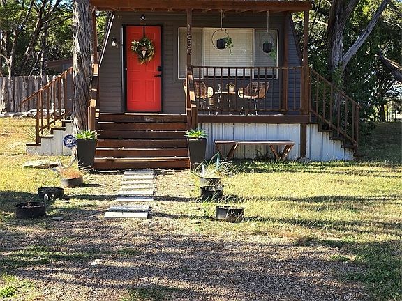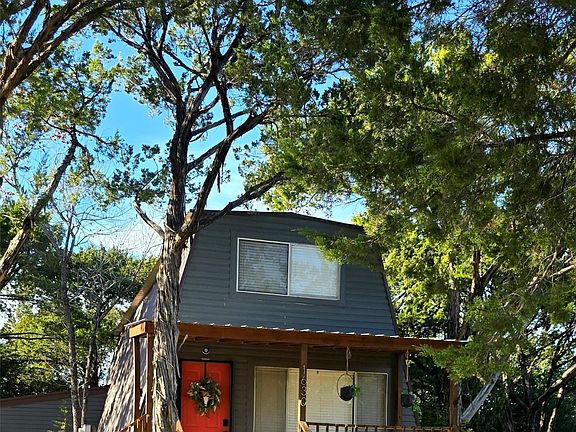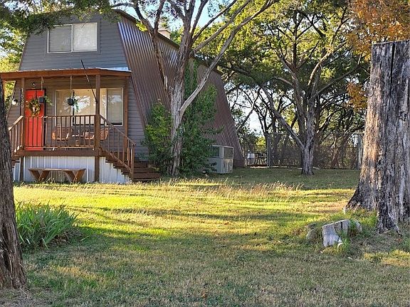Welcome to your new lake house or investment property! This 2-bedroom, 1.5-bath A-frame sits on just over a quarter-acre, surrounded by mature trees, making it feel like your own private world. Downstairs, you'll find a cozy living room, half bath, and remodeled eat-in kitchen. Upstairs are 2 bedrooms with large closets and a full bath. Has a newer metal roof and AC unit. The backyard is the heart of this property, offering views of Lake Granbury, a fire pit, and plenty of space to entertain. There's a private outdoor shower for post-lake activities or washing pets. The utility room offers extra storage. Currently used as an STR, the home rents for an average of $200 per night and has a 5 star rating as a super host. All furniture and decor is negotiable but will leave the fridge, washer and dryer. The seller offers up to $5,000 in concessions for rate buy-down or closing costs with an acceptable offer. Note: Indian Harbor is a gated community, requiring a licensed agent for entry.