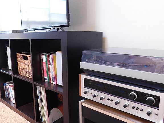 -Kitchen with retro tile and new cabinet and sink hardware. Microwave, coffee maker and kitchen wares included. Starter supplies such as coffee, basic seasonings, cleaning supplies, paper goods, etc. included.