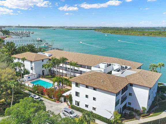 DIRECT INTRACOASTAL VIEWS! Beautiful 2 bedroom 2 bath condo directly on the intracoastal! Breathtaking wide water views! Step out your door to fish off the dock! Great view of the yachts & boats passing through the inlet! Tile throughout, french doors to master & guest bedrooms, new dishwasher, full size washer/dryer, newer AC & other upgrades. Covered parking! 1st floor unit, no stairs! Steps to the pool! Short stroll to the restaurants, beautiful ocean, jetty park & hub of South Hutchinson Island activity! Short drive to downtown waterfront with boutique shoppes, farmer's market, art galleries, festivals, city marina, salons, banking, Sunrise Theatre & more! Located on South Hutchinson Island! Experience some of the best fishing on the east coast of Florida! Measurements approximate.