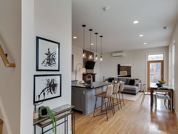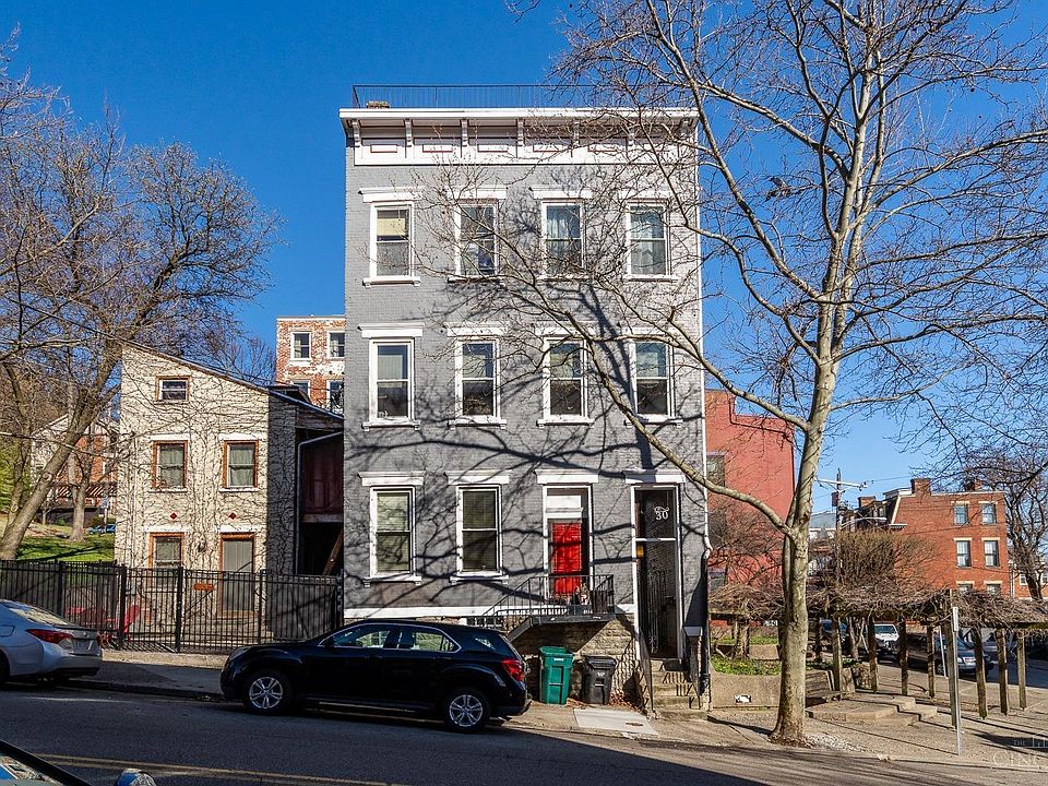 Amazing views from the top floor of this Prospect Hill condo! Right off Milton Street, this home boasts 2 rooftop decks offering breathtaking views of the downtown Cincinnati skyline. Soaring windows providing an abundance of natural light, and hardwood floors, tall ceilings, and exposed brick create an inviting atmosphere. Plenty of storage and convenient in-unit laundry. Low HOA. Private garage!
