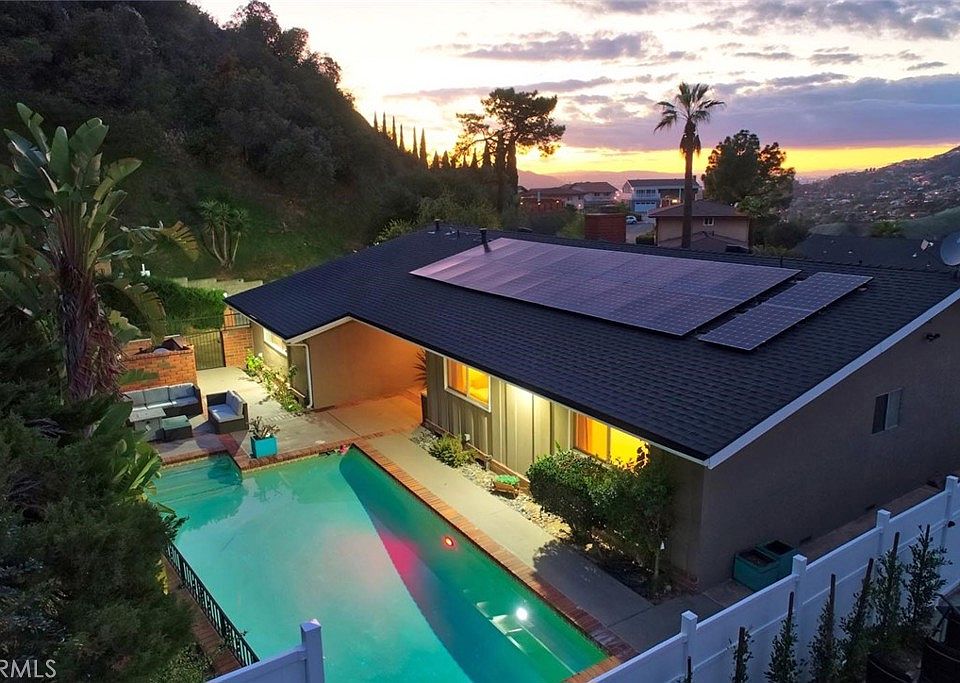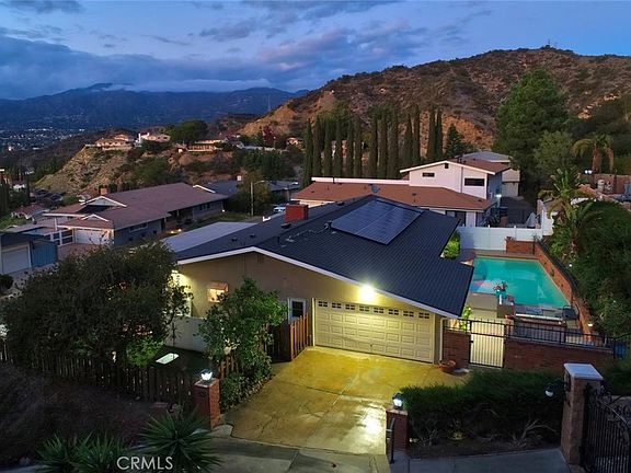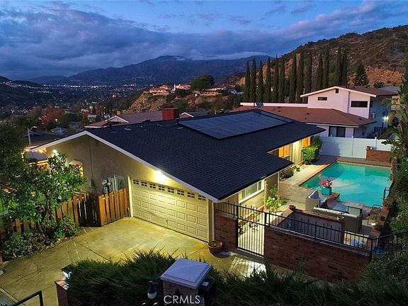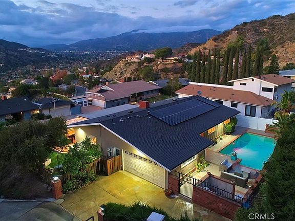 *REMODELED & SECLUDED VERDUGO WOODLANDS POOL HOME IN PRIME 91208 with VIEWS!!!** Welcome to 1630 Virden Drive, a single story mid-century modern, ranch home perched on an almost 9,000 sqft lot in a quiet cul de sac street. As you walk in, you are immediately greeted by an airy open floor plan, with ample natural light and amazing views of the surrounding mountains during the day, transitioning into a breathtaking view at night as the city lights shine and sparkle are displayed. This updated home boasts over 2,000 sqft living space with 3 bedrooms and 2 baths. As you step inside you are welcomed with an open artsy foyer showing off character, which leads into your living room complete with a gas fireplace and adjacent dining area. The completely remodeled eat-in kitchen has modern finishes, all black matte countertops, sleek white cabinetry with black details paralleling the stunning backsplash, roomy bar seating with additional extremely spacious hidden storage space underneath, and stainless steel appliances. Step outside and enjoy the serene views from your backyard complete with a sparkling pool, relaxing fountain, Jacuzzi and patio great for entertaining. Additional features include a paid solar system, newer roof, updated main electrical panel, complete new recessed lighting, fresh paint, new vinyl flooring, two-car garage with direct access into the kitchen, storage cabinets, and new turf in the backyard. Conveniently located to nearby schools, parks, and downtown Montrose. MUST SEE !!!