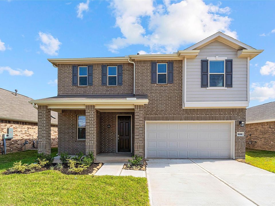 KB HOME NEW CONSTRUCTION - Welcome home to 1630 Vista Luna Drive located in Vida Costera and zoned to Dickinson ISD! This gorgeous 4-sided brick home features 3 bedrooms, 2 full baths, 1 half bath, and an attached 2-car garage. Additional features include stainless steel Whirlpool appliances including microwave, 42" Woodmont Cody cabinets in Toffee stain, Silestone countertops and kitchen island, single bowl stainless steel sink with Moen Pull-out spout faucet in kitchen, vanity with two sinks in primary bathroom, vanity with knee space in secondary bathroom, black exterior coach lights, 2" faux wood blinds, 8' entry door with SmartKey/SmartCode Entry Hardware, front gutters, and a rear patio slab. You don't want to miss all this gorgeous home has to offer! Call to schedule your showing today!