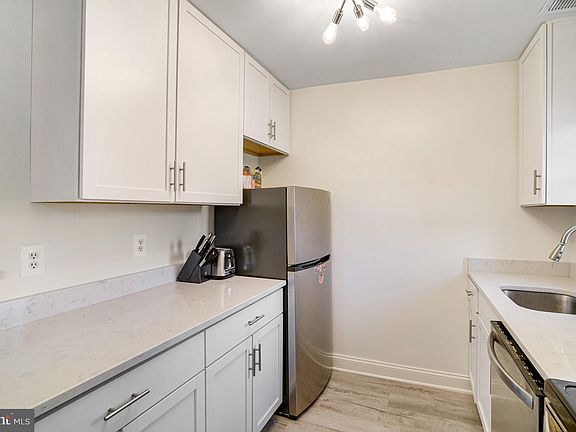 Welcome to the beautiful Potowmack Crossing in historic Old Town Alexandria! This lovely, updated condo has everything you need in an amazingly convenient location. Walk inside and you’ll find the space is nice and bright with an open concept layout. Luxury wood flooring installed in 2025, stainless steel appliances, granite counters, updated cabinets to the ceiling for optimal storage and kitchen sink has a window view. Equipped with upgraded customized lighting throughout. This unit comes with its very own stacked washer and dryer! Ceiling fans in the bedroom and living room with an efficient PTAC (Packaged Terminal Air Conditioning) wall heating and cooling unit, handy shelving in the Living Room. There is ample storage space, walk in closets throughout for plenty of storage. 2 parking spots convey!! You will love that you have two entrances to the unit; the front entrance is from the beautiful, gardened courtyard and the backside entrance direct from the private parking lot! Neighborhood amenities include extra storage available, pool, tennis, club room, fitness room, picnic area with benches and grills, lot and street parking for visitors. Just a several minute stroll to the Metro, Braddock Place Metro + Potomac Yards Metro are less than 1 mile away. Ideal access to Reagan National Airport, DC, 495, 395, & 95. Potomac Crossing is one stoplight away from Washington, DC. The quickest hop across the street to the Mount Vernon trail for biking, walking, and running along the Potomac River. Other highlights: Major redevelopments in place for the city extending to this part of Old Town, another reason this home is the perfect buying opportunity! Schedule your appointment to tour today!