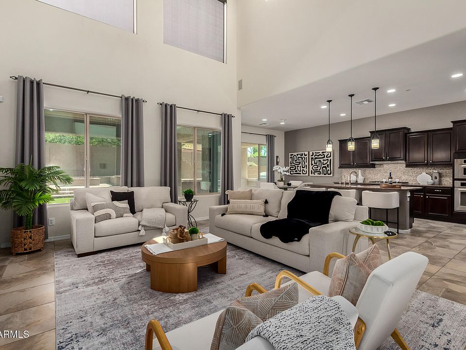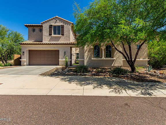 Best value in Fireside at Norterra! This corner-lot home features a private courtyard, soaring ceilings, recessed lighting, surround sound, tile floors, formal dining, and a den. The gourmet kitchen offers granite counters, tile backsplash, SS appliances, walk-in pantry, butler's area, and island with breakfast bar. Primary bedroom is downstairs. Upstairs includes a loft and walk-in closets in every bedroom. A private casita adds space for guests or an office. Backyard includes a built-in BBQ, fire pit, seating, and open desert views. Enjoy Fireside's community center, pools, gym, tennis, and parks! Delightful downstairs main suite boasts plantation shutters & a spa-like bathroom with dual vanities, a soaking tub, & a step-in shower. Additional highlights include a Jack-&-Jill bathroom & a laundry room including cabinets & a sink. Entertainer's backyard offers a built-in BBQ, covered patio, artificial turf, fire pit area, pavers, & a cement bench for gatherings. A rare bonus is the detached guest quarter, ideal for visitors or private living space! This home truly has it all!