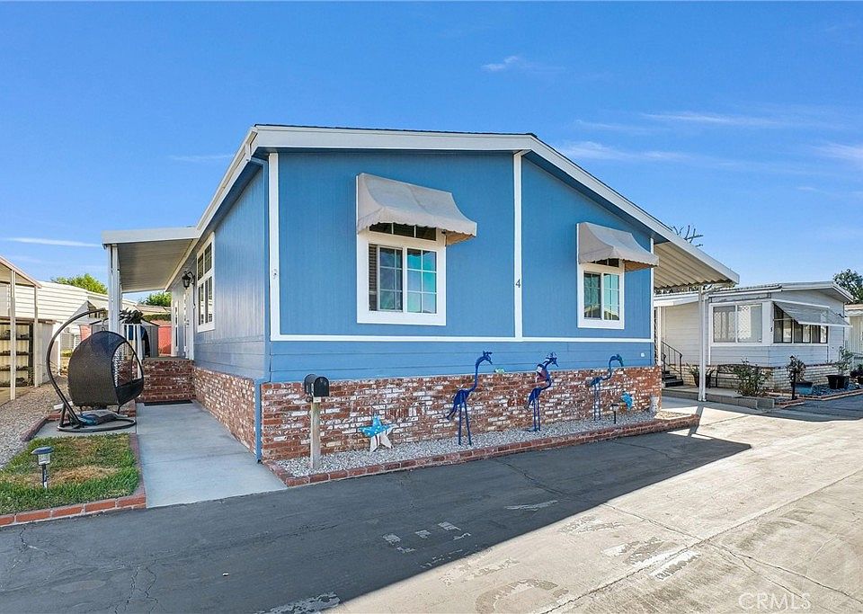 Charming, Move-In Ready Home in the Heart of San Dimas – Perfect for Seniors! Welcome to this beautifully renovated, low-maintenance manufactured home located in the highly sought-after San Dimas Royal Mobile Estates, a serene 55+ senior and rent controlled community. This immaculate home, built in 2005, has been thoughtfully upgraded to meet your needs and lifestyle, offering comfort and convenience in a peaceful setting. As you enter this bright and spacious 2-bedroom, 2-bath home, you'll immediately notice the natural light pouring in and the open, airy feel. The home has been freshly updated with waterproof, scratch-resistant vinyl flooring throughout, providing both beauty and durability. Energy-efficient double-pane vinyl windows keep the home cozy and help reduce utility costs. The kitchen has been modernized with brand-new upper cabinets, sleek Quartz countertops for easy care, and plenty of storage space for all your culinary needs. The laundry nook has been cleverly transformed into a generous pantry, with washer/dryer hookups still in place for ease of conversion. A charming breakfast nook with a ceiling fan offers the perfect spot to enjoy your morning coffee. The spacious main bedroom easily accommodates a Cal King bed, and the walk-in closet provides all the room you need for your wardrobe. The guest bedroom, located at the opposite end of the home, offers a peaceful retreat with a lovely view of the community. Throughout the home, you’ll appreciate the elegant crown molding, recessed lighting, and ceiling fans in every room, promoting fresh air circulation while keeping energy costs down. 4 Solar tubes throughout the home help with lighting at all times. Central air and heat ensure you’ll stay comfortable year-round. Outside, the home features two storage sheds, a wheelchair elevator for easy access, and a carport with space for two vehicles. The roof is less than 6 months old and comes with a 5 yr labor/ 30 yr material warranty. You’ll be just a short walk from the community clubhouse, pool, and spa, perfect for socializing or unwinding. Plus, all your shopping needs are met within a 5-minute drive, with Costco, Sam's Club, and Home Depot nearby, and easy access to the 210 and 57 freeways for commuting. This home is truly a must-see and offers everything you need for a relaxed, comfortable lifestyle in a friendly, well-maintained community. Don't miss out on this rare opportunity to own a beautifully updated home.