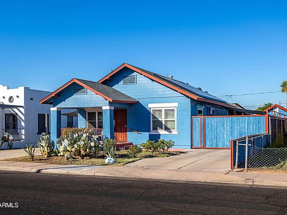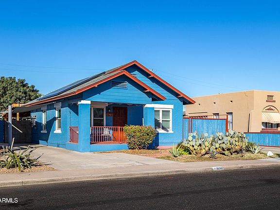 Charming 1930 Craftsman Bungalow in the Oakland Historic District! This 2 bed, 1 bath home combines classic architectural character with a range of thoughtful upgrades. The open kitchen offers granite counters, stainless steel appliances, and bar seating, creating an inviting cooking and dining space. Additional updates include dual pane windows, refreshed plumbing and electrical, and modern energy-efficient features such as owned solar (7 years old) and two mini-split AC systems installed in 2023. Outside, enjoy a massive entertaining gazebo, a detached garage/workshop, and the ability to charge two electric vehicles at the same time. All just minutes from the downtown Phoenix core, providing historic appeal, modern comfort, and unbeatable urban convenience.