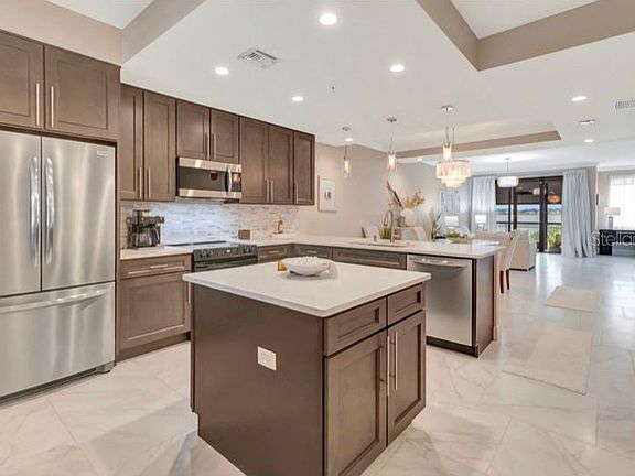 Experience Mediterranean elegance in this stunning Florida Bella Collina condo. As a resident of Siena Towers you will enjoy premium amenities including a resort style pool, 24-hour fitness center, outdoor grill and dining area. The HOA covers water, cable, internet, and two assigned parking spots. Overnight security all within a gated community. A Luxury lakefront living ground floor condo, with easy access to outdoor spaces for walks. Bella Collina offers various membership options; the Club’s spa, restaurants, and year-round events. Pet friendly.
