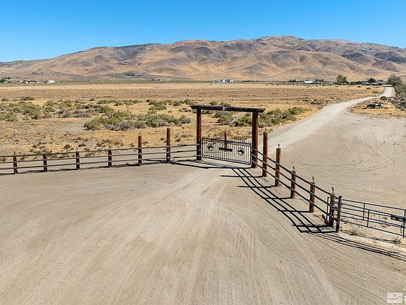 As soon as you hit the gate, you'll be enchanted by the captivating charm and tranquility of this breathtaking equestrian property in the heart of Palomino Valley. Nestled among rolling mountains and expansive desert views, this luxurious single-story home offers a peaceful retreat just minutes from all the amenities and the serene shores of Pyramid Lake. The property includes multiple additional structures, such as horse corrals, sheds, and a large workshop with roll-up doors., This property offers countless opportunities for expansion and customization. With its spacious layout, this property holds potential for future enhancements and variance from it's current use, making it an ideal investment for those looking to tailor the land to their unique needs and vision. Inside the home, you'll discover an impeccable interior with high ceilings and a great room that boasts a cozy fireplace. The kitchen is a dream come true, equipped with a built-in dishwasher, microwave, trash compactor, and a breakfast bar that’s perfect for casual mornings. The primary bedroom is a sanctuary with a walk-in closet and jetted tub with incredible views.