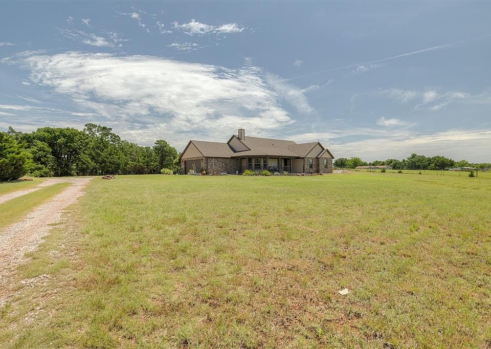 Welcome to peaceful country living at 16300 Roland Drive, a beautifully maintained 3-bedroom, 2-bathroom home built in 2011, offering 1,512 square feet of open-concept comfort on a serene 5.9-acre hilltop parcel. From the moment you arrive, you're greeted with breathtaking panoramic views stretching more than 10 miles across the Oklahoma landscape—an ideal setting for those seeking privacy, space, & natural beauty. Inside, the home features a light-filled, open layout with cathedral ceilings that enhance the sense of space & flow. The living room centers around a charming fireplace, creating a cozy gathering spot on cooler evenings. The adjacent kitchen is perfectly designed for functionality & connection, offering a spacious island, ample cabinetry, & room for entertaining or quiet mornings at home. The primary suite is a peaceful retreat, complete with a full ensuite bathroom and generous closet space, while two additional bedrooms share a well-appointed guest bath. Step outside and enjoy the wide-open outdoors. The nearly 6-acre lot is dotted with mature Post Oak trees and includes a mix of wooded space and open pasture—perfect for horses, gardening, or simply enjoying the natural surroundings. A 16×30 electric shop with loft space offers endless potential for hobbies or storage. For those working from home or in need of creative space, a 12×30 heated-and-cooled outbuilding is the perfect solution. Covered front and back porches extend the living space outdoors and are ideal for watching the sunrise or sunset. The property is well-equipped with a private pond, well, septic system, & an in-ground storm shelter, ensuring both comfort and security. Located just a couple of miles from Historic Rte 66, it offers easy access to commuting routes while maintaining a quiet rural lifestyle. Whether you’re seeking a homestead, a peaceful escape, or a place to work & live surrounded by nature, 16300 Roland Drive offers the perfect blend of comfort, utility, & charm.