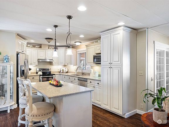 Discover the perfect blend of comfort and community in this fully updated manufactured home within Cedar Glen; a serene 55+ park. This home has an open layout, and features a roomy kitchen with stainless steel appliances, quartz countertops, and custom cabinets. The primary suite offers a walk-in closet and ensuite primary bath with oversized shower. Enjoy outdoor living in the private back yard. A like new shed provides ample storage. The community offers paved roads for leisurely walks, access to a clubhouse, events, and laundry room. Along the bus route and just minutes to downtown Poulsbo, shopping and Clearwater Casino Resort. This home is ideal for those seeking a move-in ready, low-maintenance lifestyle.