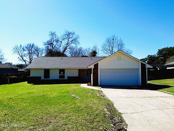 Freshly updated 3-bedroom, 2-bath home. Recent renovations include a brand-new architectural shingle roof, a new HVAC system with ductwork, and fresh paint throughout. The home features stunning luxury vinyl plank flooring, along with combo ceiling fans in every bedroom and the living area for year-round comfort. The high-ceiling living room is a standout feature, with a charming wood fireplace perfect for cozy evenings. The kitchen featuring new cabinetry, granite countertops, and a subway tile backsplash. Stainless steel appliances, including an electric range, microwave, and dishwasher, complete the modern aesthetic. The bathrooms feature tile surround, with new vanities, lighting, mirrors, and toilets. New front and back exterior doors and a sliding door leading to the sunroom add to the home's charm. Double car garage. Enjoy the spacious backyard, perfect for outdoor activities and relaxation. Located near shopping, restaurants, the casino, schools, I-10, and Keesler Air Force Base, this home offers both convenience and style. Ready to move in—schedule your showing today!